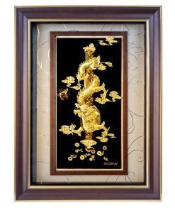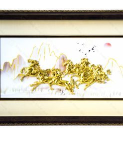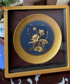 Tranh hoa sen vàng bằng vàng lá 24k, quà tặng tranh vàng 24k